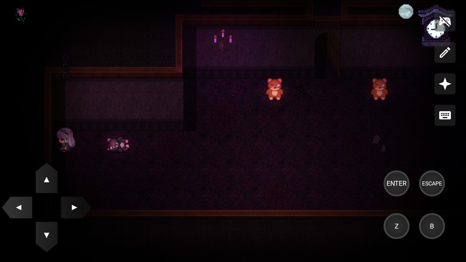 黑暗童话为主要内容的像素解密恐怖游戏,这款游戏将黑暗童话以及恐怖氛围拉到极致,同时在这款游戏中你还会看到可爱的角色,虽然角色很可爱但是一定要快点解密哦,不让你就会消失,游戏的难度还是有点高的,所以要细心和多多探索。