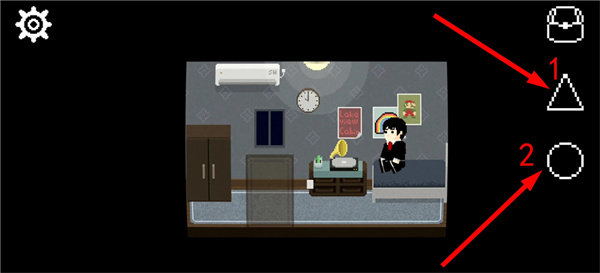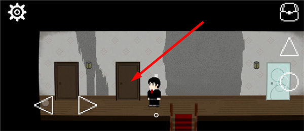 5、怪物在黑暗的环境是不会攻击的,我们需要关掉走廊的灯,长按三角按钮可以观察怪物走向,如果它朝着远离我们的方向走开,我们就出门,快速熄灭走廊的灯。