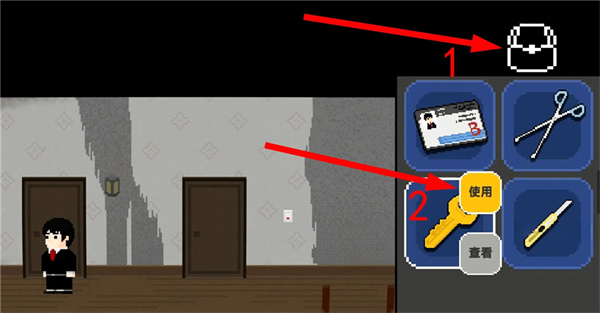 6、来到白天的书房,打开背包使用钥匙,获得马桶塞。