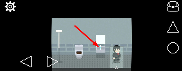 9、在白天的厕所中,按三角键坐上马桶后,再按圆形键冲马桶,会发现有东西卡在下水道。
