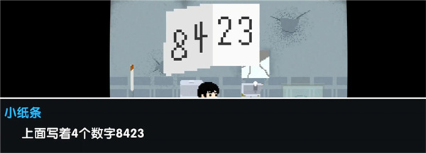 10、在马桶边使用垃圾夹子,获得写有密码的纸条,纸条上写着8423。
