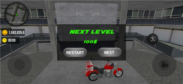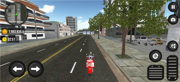 4、上车后通过屏幕上的多个操控按钮驾驶摩托车,包括油门、刹车与转向。