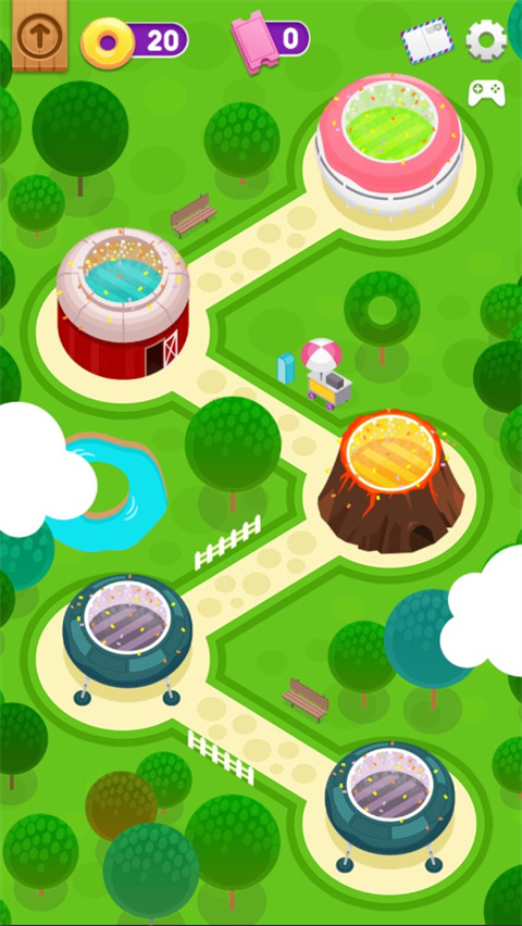 1、下载并进入《疯狂甜甜圈》官方版,即可开启丰富关卡挑战之旅;