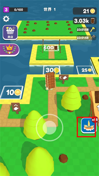 5、在交易所中,可将采集到的木头兑换成金币,用于解锁并扩建新的岛屿区域。