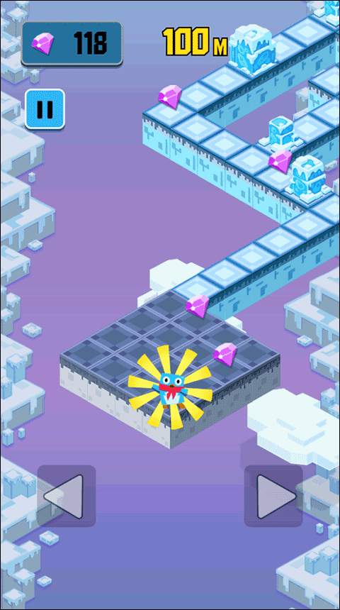 3、因为游戏不存在边界的概念,所以很多时候因为后面的冰块会不断融化,所以玩家一定要在紧张的情况下想好每一步的计划,不然就会导致企鹅掉落下去;