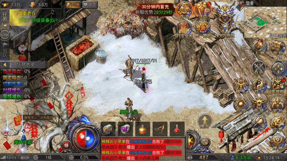 根据角色等级,挑战强力BOSS如万年树妖、魔龙教主等,击败它们能够掉落极品装备和稀有材料。
