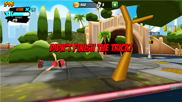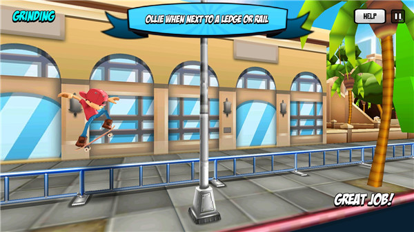 游戏中设有大量可交互的栏杆、围栏等结构,只需轻点屏幕即可跃上其上,并获得额外分数奖励。站稳后还能在栏杆上完成翻转、滑行动作,进一步叠加得分。但需注意:接近落地前切勿随意跳跃,否则极易因时机不当而摔落。