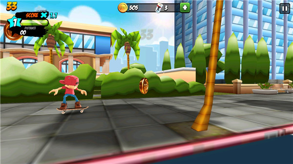 4、持续强化你的滑板少年,让得分倍率飙升,轻松突破天际。