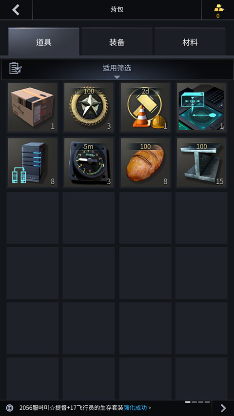 3、购买后的物资可以前往道具背包中进行确认。
