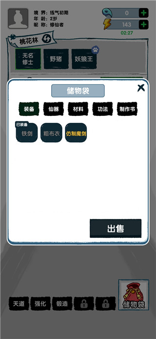 3、随着实力增强,可行走江湖、斩妖除魔、探索秘境、强化己身,在成长过程中还有机会获得珍贵图纸。