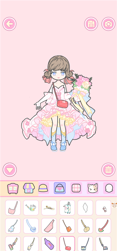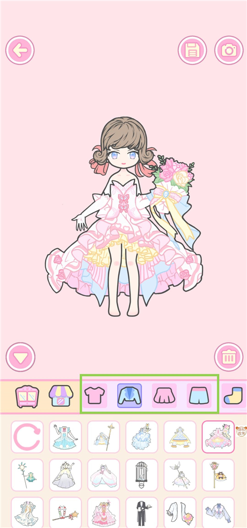 6、进入服装搭配环节,既可选择完整礼服,也能自由组合上衣、下装等单品。