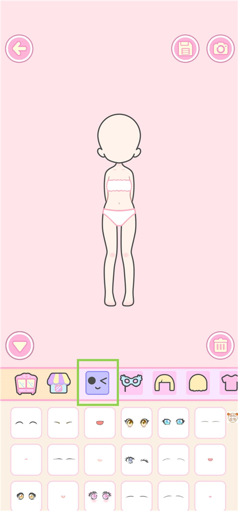 3、若选择空白形象,首先为芭比挑选眼睛、嘴巴等五官部件,塑造独特面容。