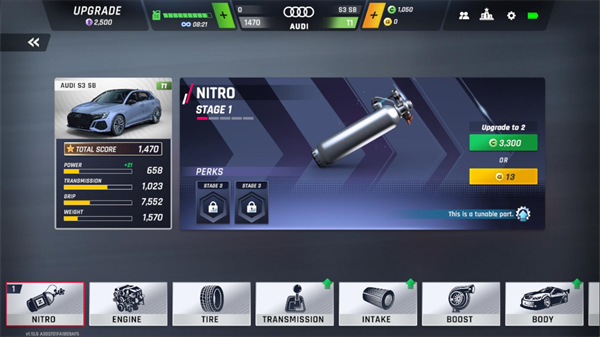 2、然后点击“Upgrade”按键就可以进行升级,提高赛车性能。