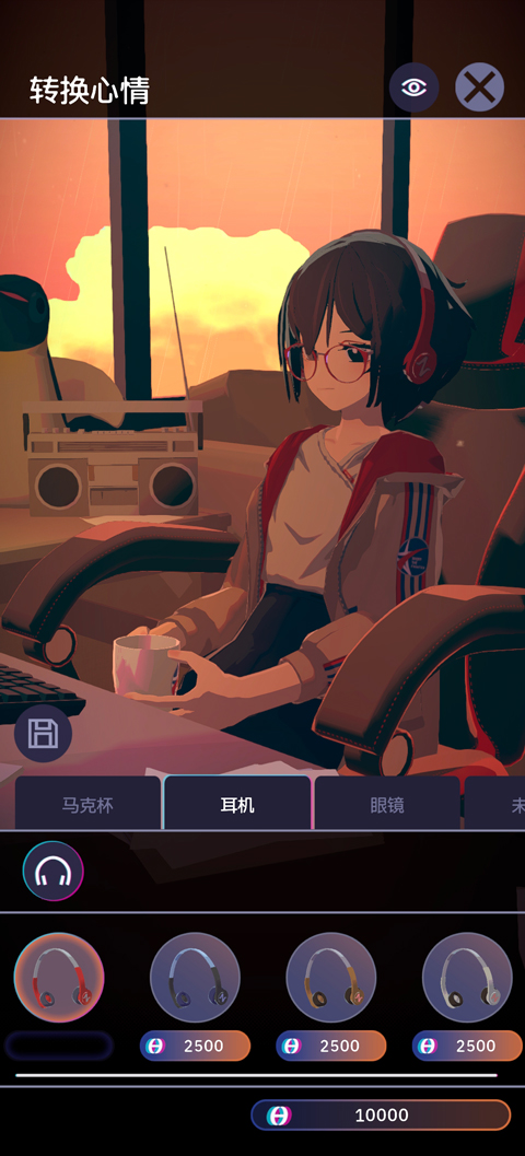 5、玩家还可以装扮少女,更换马克杯、耳机、眼镜等;