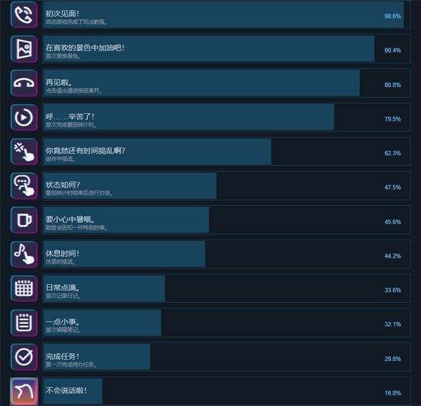 放松时光与你共享Lo-Fi故事是一款陪伴型放置养成游戏,游戏中有一个喜爱写小说、且充满幻想的少女——聪音(Satone),她会陪你一起在书桌前工作,帮助你更加专注于工作。同时在游戏中你还可以与少女“聪音”对话交流,而且随着时间推移,你们的关系也会逐渐加深,当到达一定好感度后,还会对你敞开心扉,吐露更多的小秘密。玩家可根据自己的喜好来设置调整,以此来营造一个专注于工作的环境。