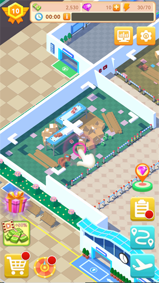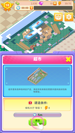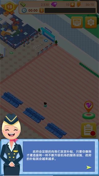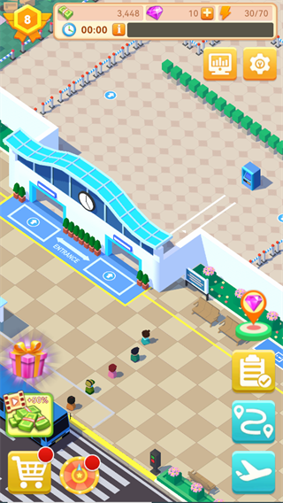 1、玩家可自由规划机场布局,建造航站楼、停机坪、滑行道、跑道等基础设施。