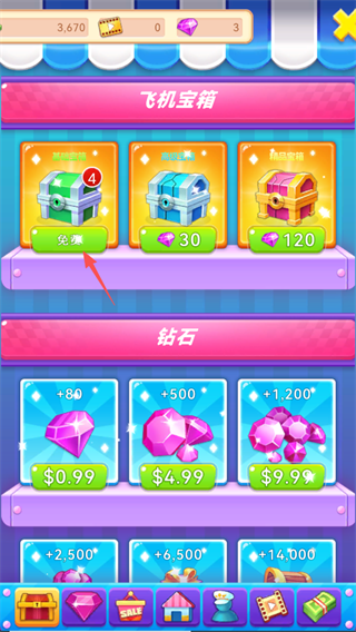 2、在屏幕上方的“飞机宝箱”开启宝箱,直接点击即可。