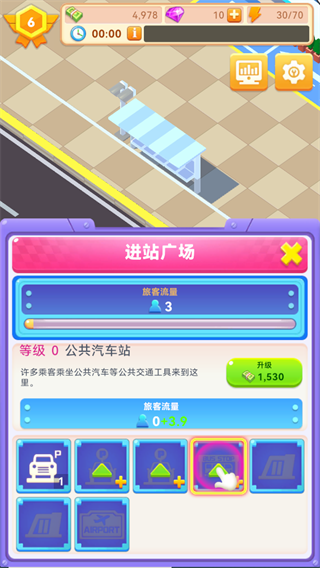 3、您的乘客正从城市抵达!从抵达开始管理客流,为他们提供舒适的基础设施和各种商店供他们购物。