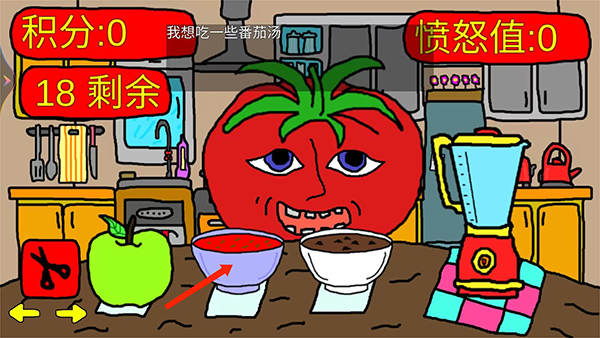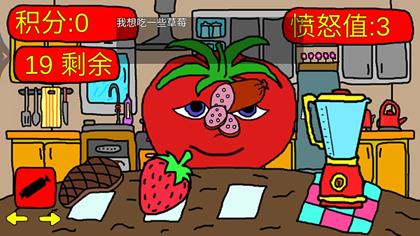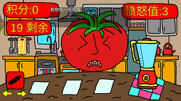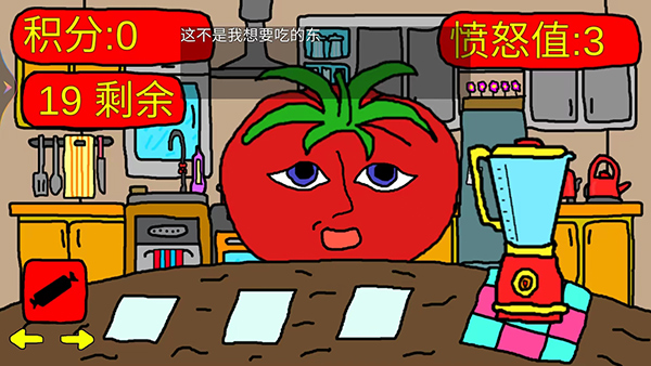 8、番茄先生反馈说:这不是我要吃的东西,当没有喂给他想吃的东西,右上角的愤怒值会增加,我们继续不按照他的要求喂食,