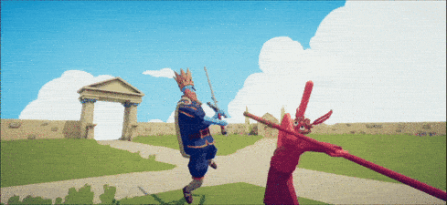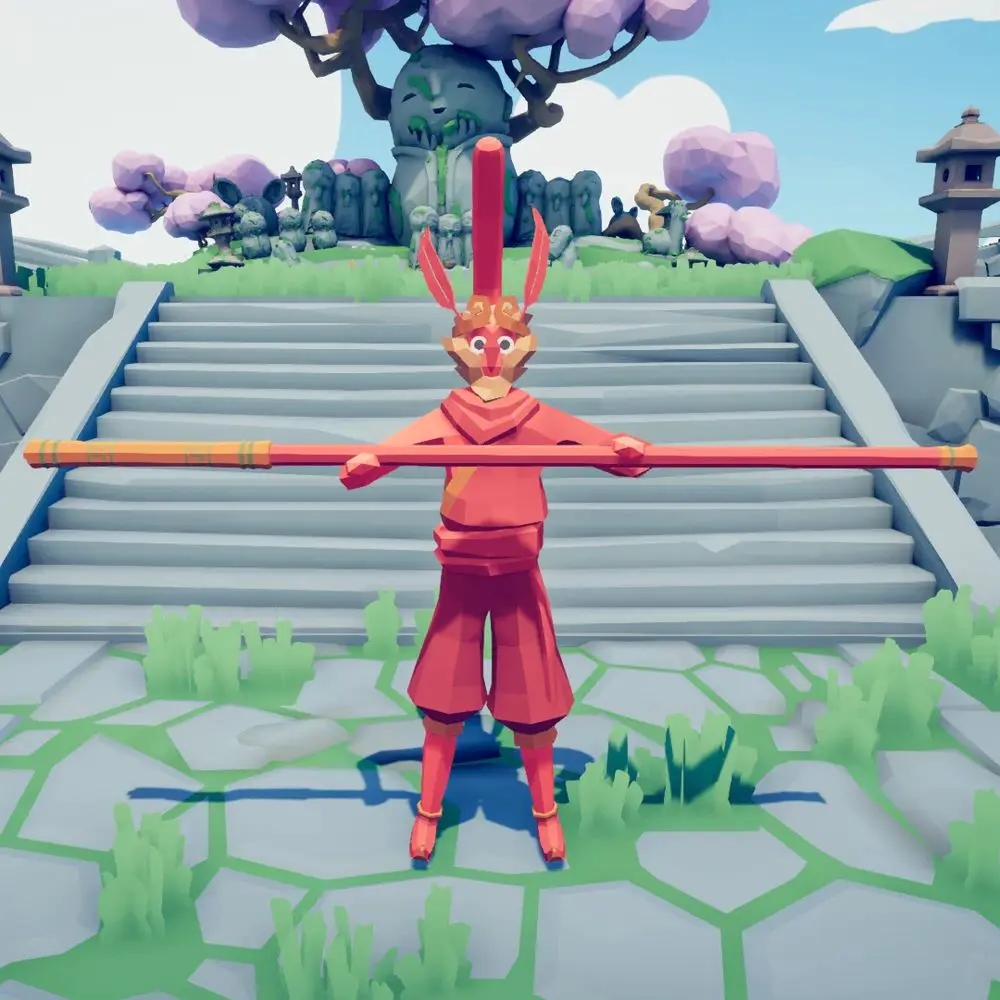 作为TABS的近战角色,猴王手执猴王棒行走在战场上,行至一定距离范围以内将发动【猴王跳】技能,纵身一跃朝着敌人扑上去扭打在一起。猴王棒攻击速度快,冷却时间短,在战斗中棍棒将进一步伸长,横扫攻击的范围优势对于控制敌群非常实用。