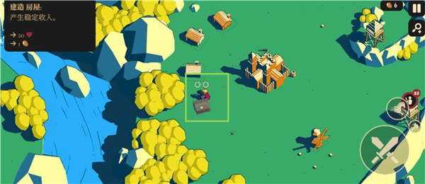 3、当有足够金币时,需要建造房屋等经济设施,产生收入。