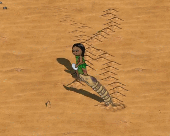 沙漠地区分布在地图的边缘,是获取青铜矿、锡石矿、刺刺果、茄子、无花果、奥里卡多等物品的主要地貌,该地貌还包含斑羚、嚎狼、沙漠獠牙等动物。村民们需要注意,沙漠獠牙是沙漠的地头蛇!它通过听声辨位来对每一位踏足沙漠里的村民发动攻击!及时躲避或者随身携带绷带急救自己,还会有一线生机!