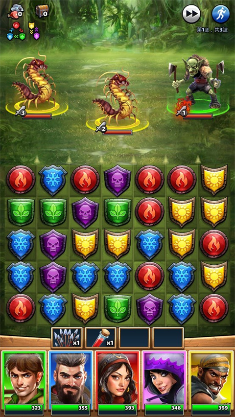 配合英雄和消除格子的技能、消耗道具的使用来达成战斗的胜利