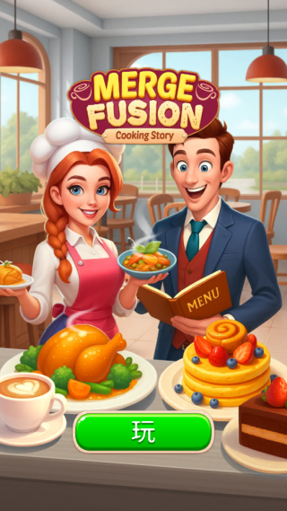 3.点击“玩”,去往一个有趣的世界开启合并烹饪。