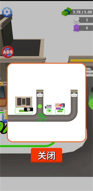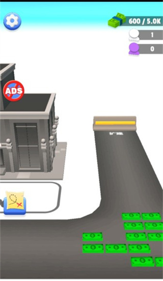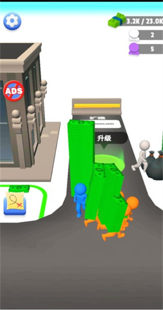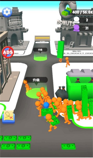 1、在这里玩家的任务就是不断挣钱,搬运钞票来扩展区域。