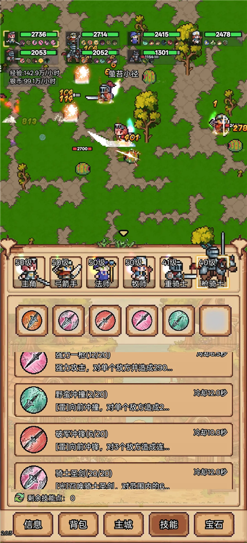 像素冒险村是一款像素风冒险养成手游,玩家将组建六人小队在各地图中进行冒险,你需要通过不断挂机战斗来获取各种资源进行角色养成,体验慢慢成长、逐步变强的趣味。游戏设有战士、牧师、法师、弓箭手、枪骑士、重骑士等经典职业,玩家后期可通过英雄徽章逐渐解锁这些职业,进行多元路线的养成。