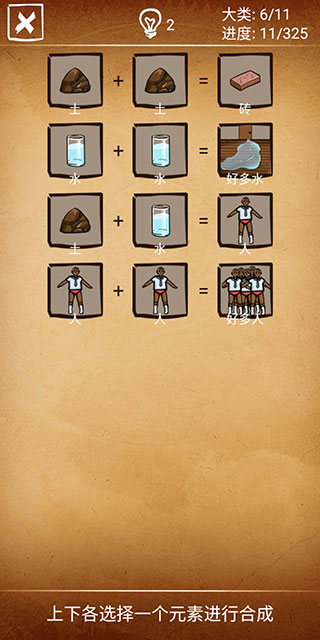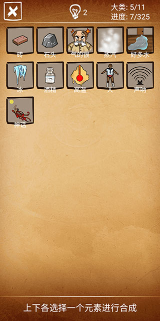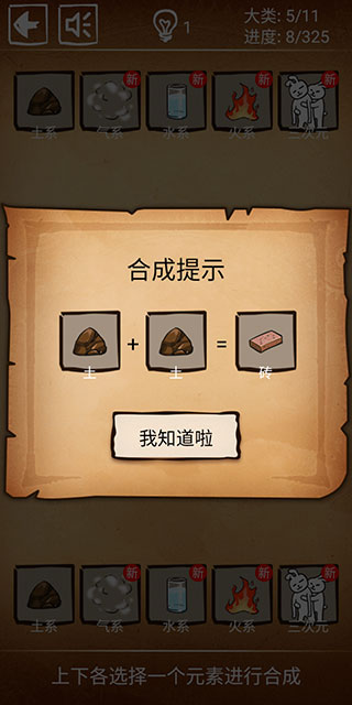 2、初始元素只有5个,随着合成的进行可以解锁更多元素。
