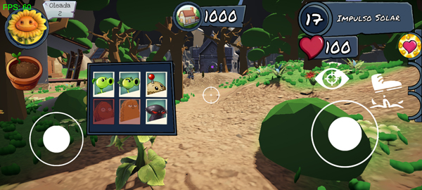 2、进入战场后,玩家将亲自操控植物角色,自由移动并向僵尸发起攻击;