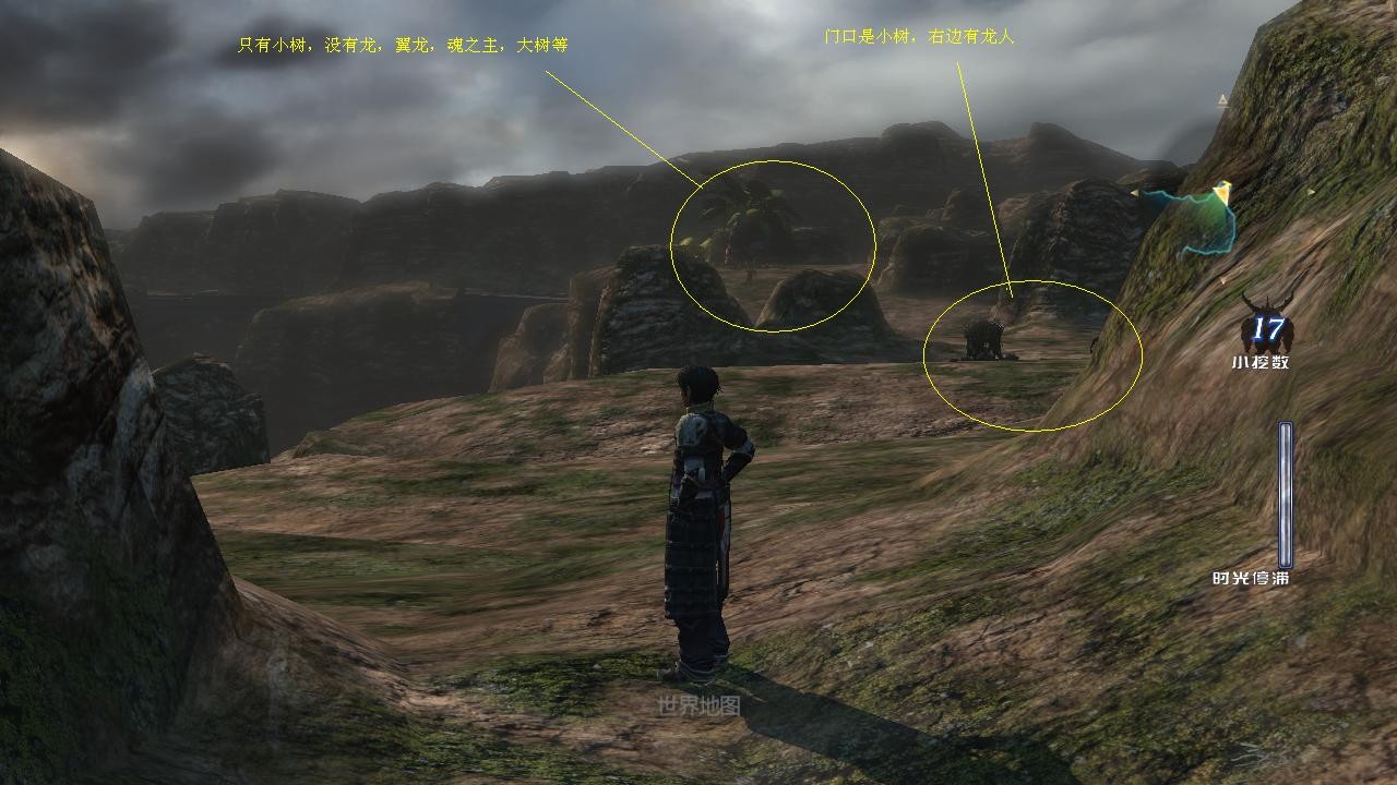 判断为蓝圈处有一只睡觉的迅猛兽,红圆那里无怪,黑圈就是稀有怪刷新点