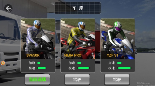 1、在车库当中,包含了很多不同类型的摩托车,每一辆的加速和极速都不一样。