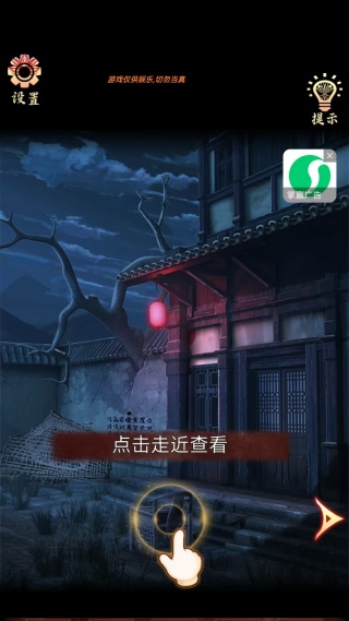 3、看到院子门口挂着奇怪的红灯笼,走近前去查看吧。
