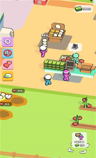1、首先我们进入游戏,第一步就是先解锁一些货架,开始售卖产品;