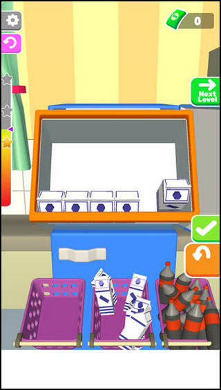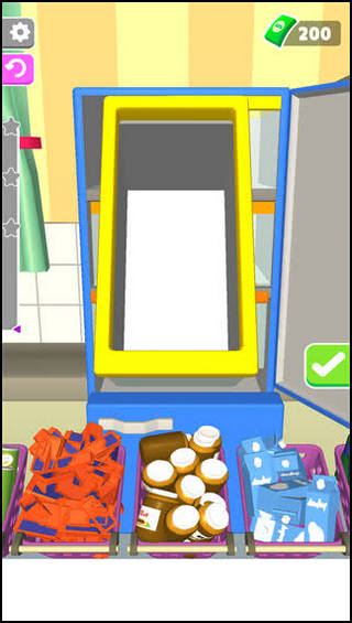 2、每个关卡中都会要求把不同类型的物品放进冰箱,但是需要空间想象能力去进行合理的放置;