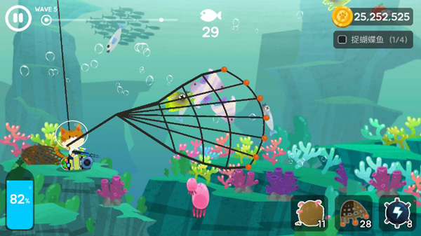 3、使用捕鱼网,让你可以快速的抓住更多的鱼,将鱼儿们一网打尽。