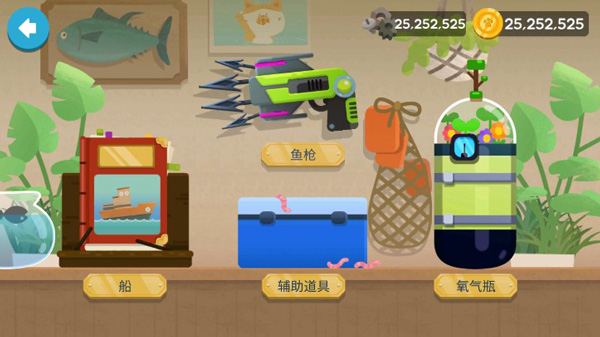 首先出海航行需要用到渔船、捕鱼鱼抢以及氧气瓶,氧气瓶的容量决定了玩家在海底捕鱼的时间,当然容量越高,捕鱼的时间就会越长;鱼抢是捕鱼工具,这里所涵盖的鱼抢有很多,但每种鱼抢都大致有如下属性:穿透力、连射频率、射击速度、射程覆盖和氧气消耗,每种鱼抢都可被升级强化;船是玩家前往不同场景不可或缺的工具,高等级的船能出发的距离也就越远。