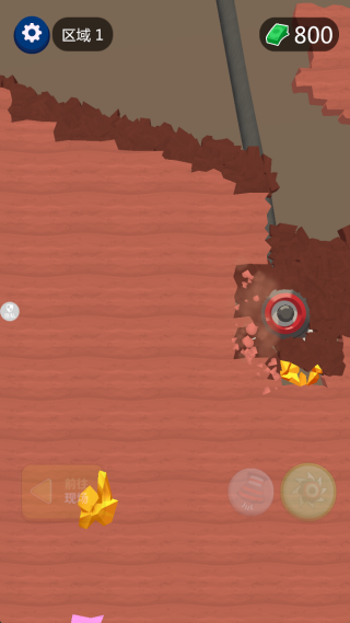 1、在挖掘处,通过点击屏幕滑动,来控制你的挖机进行地底探索。