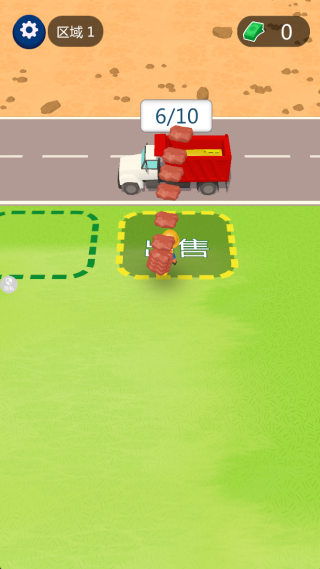 1、核心玩法是挖掘与贩卖,驾驶挖掘机在工地范围内寻找砖块,精准操作挖斗将其挖出,并运送到回收站出售。