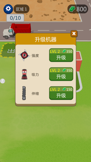 2、经济管理与设备升级设定,通过贩卖砖块获得金币,用于购买更强大的挖掘机或升级现有部件,提升工作效率。