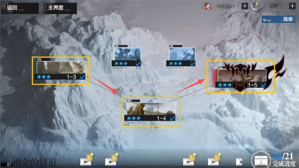 当推进受阻时,可以回头刷前面章节的普通或困难关卡补资源。困难关卡虽然数量不多,但奖励集中,其中通关后可获得较多【黄金】奖励,同时还能额外获取抽卡机会,用于补充阵容深度。