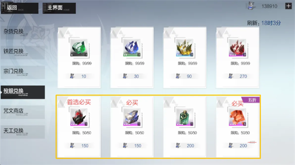 商店每日存在限购机制,对于资源紧张的玩家来说,建议优先全部拉满基础材料购买,整体成本并不高,大约在35000【殁银】左右。