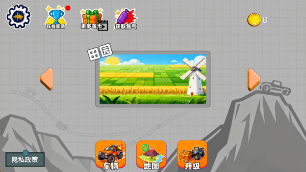 游戏中提供多种造型独特、性能各异的赛车供你选择。每辆车都支持全方位升级与个性化改装,包括引擎、轮胎、悬挂和油箱等关键部件。合理搭配改装方案,不仅能提升爬坡能力与稳定性,还能在复杂地形中游刃有余,助你轻松应对各种高难度关卡。