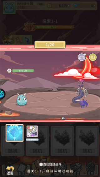 6、当遭遇敌人时,角色会自动进行攻击,玩家也可以选择点击上方按钮直接跳过战斗过程。