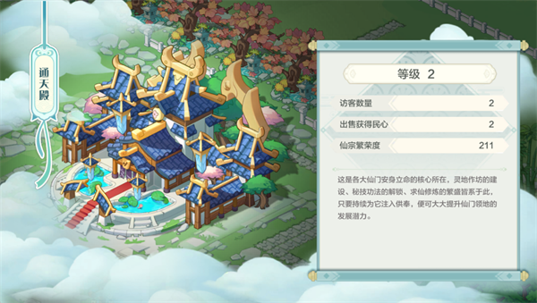 5、赚取的金币可用来升级通天殿等级,提升建筑效果。现在开始你的宗门经营之旅吧!