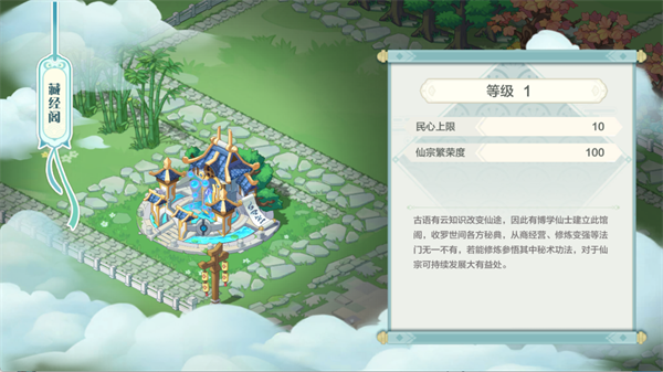 描述:古语有云知识改变仙途,因此有博学仙士建立此馆阁,收罗世间各方秘典,从商经营、修炼变强等法门无一不有,若能修炼参悟其中秘术功法,对于仙宗可持续发展大有益处。