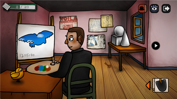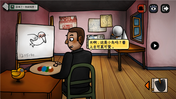 20、点击左边进入场景,将小鸡放在桌子上等待将小鸡绘画出来;