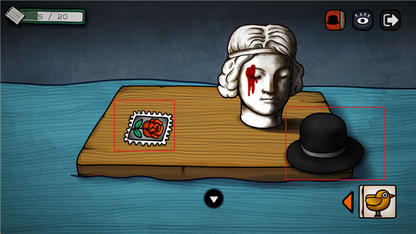 17、回到下图场景,将帽子放在桌子上它会戴起来并给你硬币;